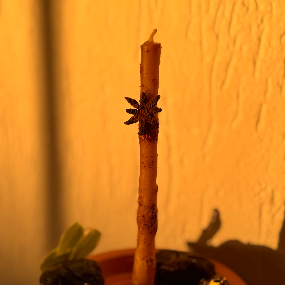As abelhas são vistas, em diversas culturas, como mensageiras entre mundos. A cera, então, pode ser vista como o rastro sagrado dessas mensageiras, como se cada vela carregasse um pouco da canção das abelhas, da memória das flores, da vibração solar e desse elo entre mundos.Sendo assim, podemos enxergar as abelhas como guias espirituais